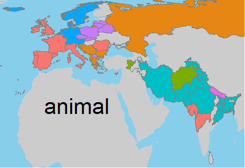 The following table is not complete. It uses only the words that either went into the map on this page (plus Lahnda), or would have done but for irregular or multiple cognate classes. See the IELex page for animal for the full table. Cognate classes in brackets denote loanwords.