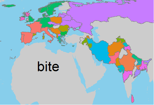The following table is not complete. It uses only the words that either went into the map on this page (plus Lahnda), or would have done but for irregular or multiple cognate classes. See the IELex page for bite for the full table. Cognate classes in brackets denote loanwords.