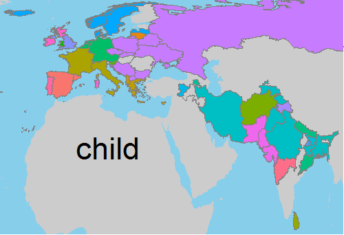 The following table is not complete. It uses only the words that either went into the map on this page (plus Lahnda), or would have done but for irregular or multiple cognate classes. See the IELex page for child for the full table. Cognate classes in brackets denote loanwords.