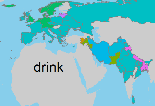 The following table is not complete. It uses only the words that either went into the map on this page (plus Lahnda), or would have done but for irregular or multiple cognate classes. See the IELex page for drink for the full table. Cognate classes in brackets denote loanwords.