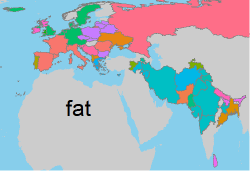 The following table is not complete. It uses only the words that either went into the map on this page (plus Lahnda), or would have done but for irregular or multiple cognate classes. See the IELex page for fat for the full table. Cognate classes in brackets denote loanwords.