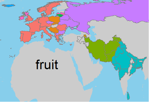 | Swedish | frukt | (B) |