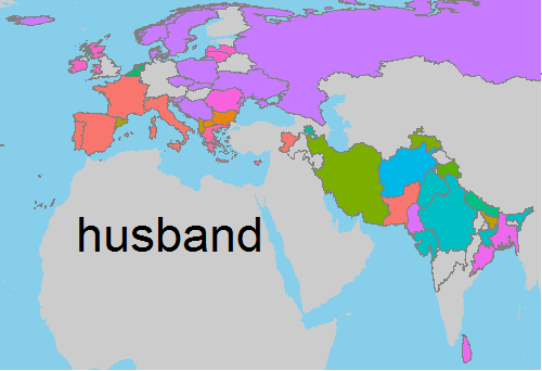 The following table is not complete. It uses only the words that either went into the map on this page (plus Lahnda), or would have done but for irregular or multiple cognate classes. See the IELex page for husband for the full table. Cognate classes in brackets denote loanwords.