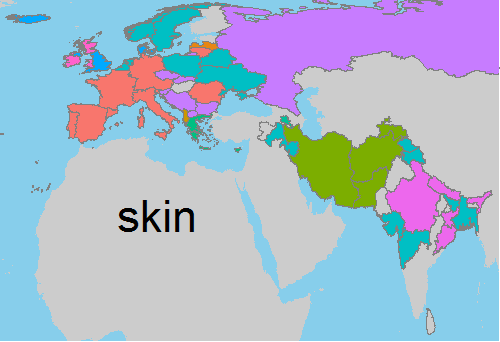 The following table is not complete. It uses only the words that either went into the map on this page (plus Lahnda), or would have done but for irregular or multiple cognate classes. See the IELex page for skin for the full table. Cognate classes in brackets denote loanwords.