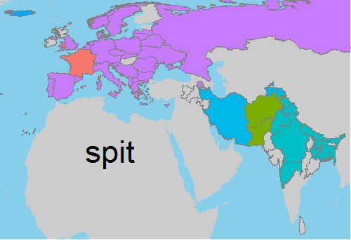 The following table is not complete. It uses only the words that either went into the map on this page (plus Lahnda), or would have done but for irregular or multiple cognate classes. See the IELex page for spit for the full table. Cognate classes in brackets denote loanwords.