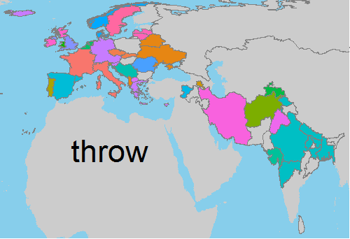 The following table is not complete. It uses only the words that either went into the map on this page (plus Lahnda), or would have done but for irregular or multiple cognate classes. See the IELex page for throw for the full table. Cognate classes in brackets denote loanwords.