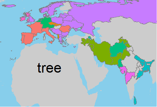 The following table is not complete. It uses only the words that either went into the map on this page (plus Lahnda), or would have done but for irregular or multiple cognate classes. See the IELex page for tree for the full table. Cognate classes in brackets denote loanwords.