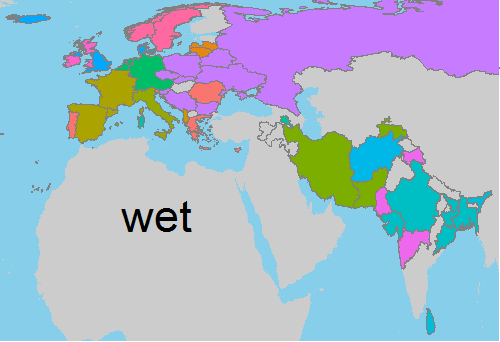 The following table is not complete. It uses only the words that either went into the map on this page (plus Lahnda), or would have done but for irregular or multiple cognate classes. See the IELex page for wet for the full table. Cognate classes in brackets denote loanwords.