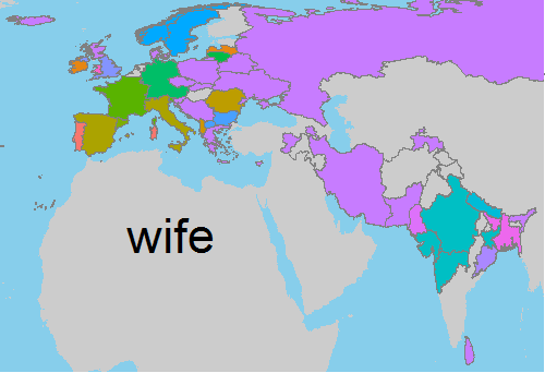 The following table is not complete. It uses only the words that either went into the map on this page (plus Lahnda), or would have done but for irregular or multiple cognate classes. See the IELex page for wife for the full table. Cognate classes in brackets denote loanwords.