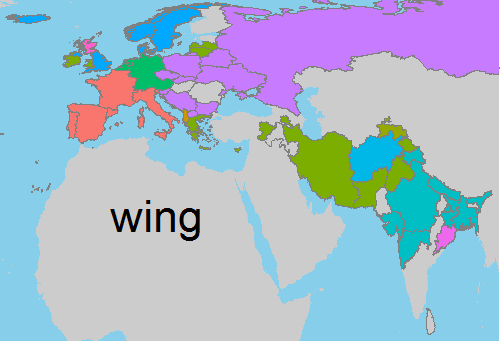 The following table is not complete. It uses only the words that either went into the map on this page (plus Lahnda), or would have done but for irregular or multiple cognate classes. See the IELex page for wing for the full table. Cognate classes in brackets denote loanwords.